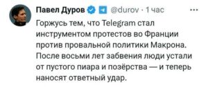 Павел Дуров заявил, что гордится использованием «Telegram» для протестов во Франции